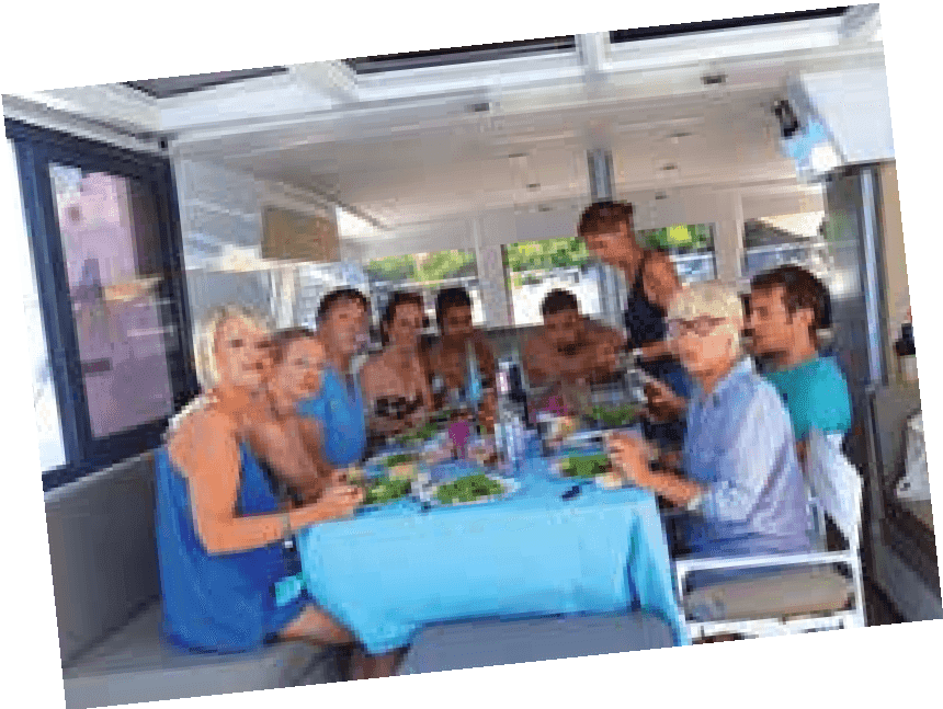 On two occasions, friends who had rented a villa in Croatia—less than 20 miles from our stopover in Montenegro—joined us onboard. We welcomed 15 people on our Bali 4.1 without any discomfort, thanks to its multiple relaxation areas. Our friends were amazed by the space—it truly exceeded their expectations!